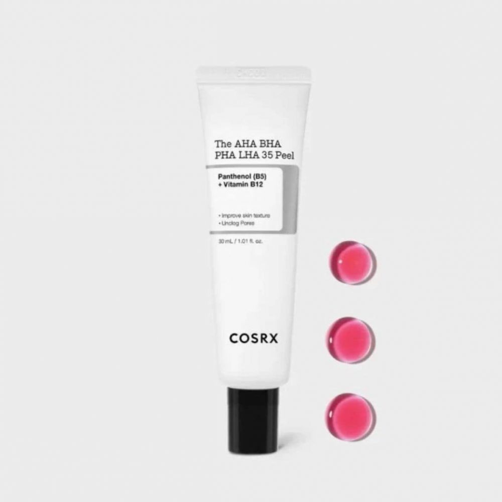 Chceš hladšiu, žiarivejšiu a zjednotenú pleť? COSRX AHA BHA PHA LHA 35 Peel je intenzívny chemický peeling, ktorý účinne odstraňuje odumreté bunky, čistí póry a vyhladzuje štruktúru pleti. Obsahuje kombináciu AHA, BHA, PHA a LHA kyselín, ktoré exfoliujú pleť v rôznych vrstvách, čím podporujú obnovu pokožky, reguláciu mazu a zjednotenie tónu pleti.